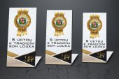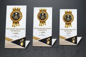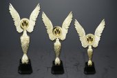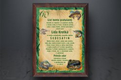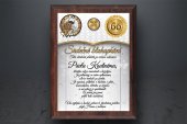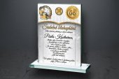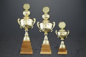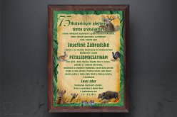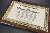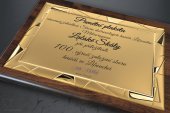 Exkluzivní kovová trofej s rámečkem umístěná na dřevěné podložce