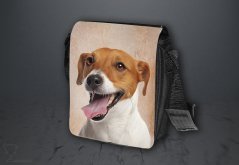 Nylonové vycházkové tašky s popruhem přes rameno, černé barvy. Velikost tašky je 21x20 cm. Na omyvatelné, odnímatelné ploše velikosti 17x20 cm je krásný paint potisk s motivem pejska.