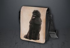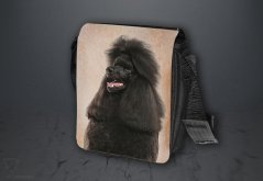Nylonové vycházkové tašky s popruhem přes rameno, černé barvy. Velikost tašky je 21x20 cm. Na omyvatelné, odnímatelné ploše velikosti 17x20 cm je krásný paint potisk s motivem pejska.