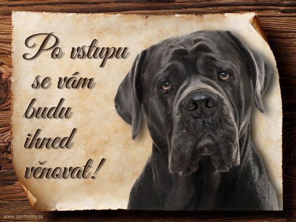 Kovová výstražná venkovní cedulka oznamující to či ono, že se ve vašem obydlí může návštěvník setkat s vašim čtyřnohým miláčkem a jeho teritoriem.