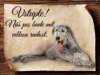 Kovová výstražná venkovní cedulka oznamující to či ono, že se ve vašem obydlí může návštěvník setkat s vašim čtyřnohým miláčkem a jeho teritoriem.