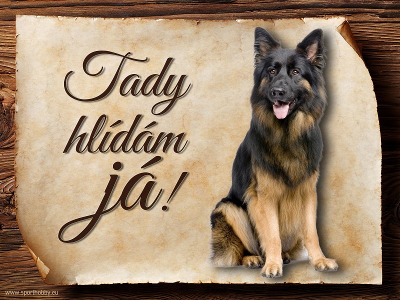 Kovová výstražná venkovní cedulka oznamující to či ono, že se ve vašem obydlí může návštěvník setkat s vašim čtyřnohým miláčkem a jeho teritoriem.