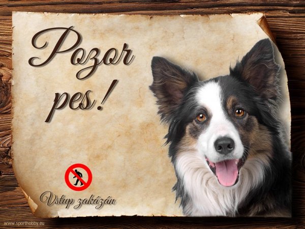 Kovová výstražná venkovní cedulka oznamující to či ono, že se ve vašem obydlí může návštěvník setkat s vašim čtyřnohým miláčkem a jeho teritoriem.