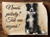 Kovová výstražná venkovní cedulka oznamující to či ono, že se ve vašem obydlí může návštěvník setkat s vašim čtyřnohým miláčkem a jeho teritoriem.