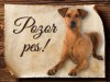 Kovová výstražná venkovní cedulka oznamující to či ono, že se ve vašem obydlí může návštěvník setkat s vašim čtyřnohým miláčkem a jeho teritoriem.
