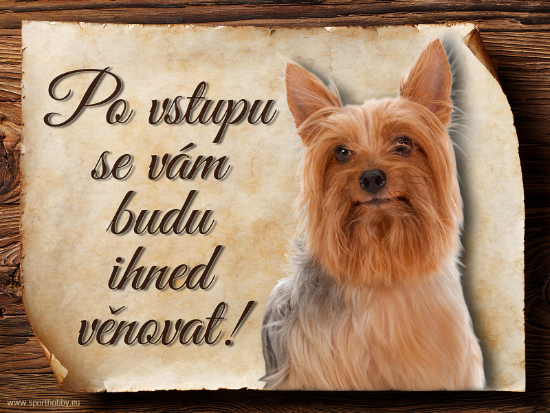 Kovová výstražná venkovní cedulka oznamující to či ono, že se ve vašem obydlí může návštěvník setkat s vašim čtyřnohým miláčkem a jeho teritoriem.