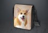 Nylonová vycházková taška s popruhem přes rameno, černé barvy. Velikost tašky je 21x20 cm. Na omyvatelné, odnímatelné ploše velikosti 17x20 cm je krásný paint potisk Welsh corgi.