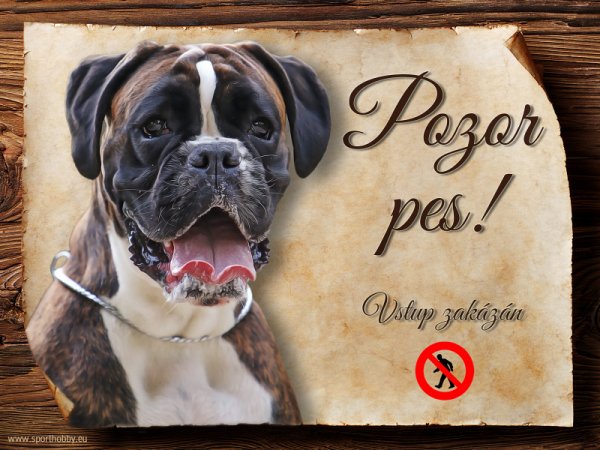 Cedulka Německý Boxer - Pozor pes zákaz