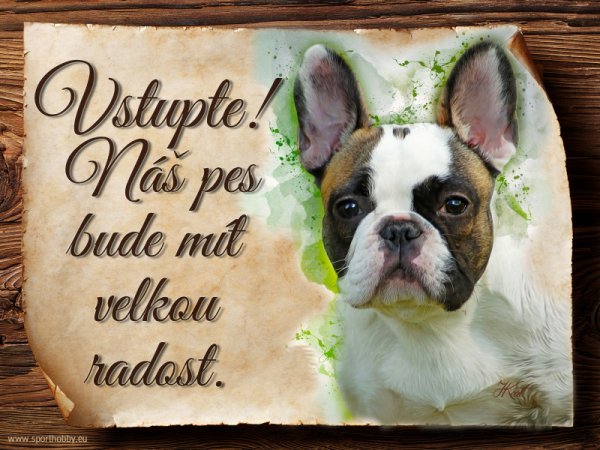 Kovová výstražná venkovní tabulka oznamující to či ono, že se ve vašem obydlí může návštěvník setkat s vašim čtyřnohým miláčkem a jeho teritoriem.