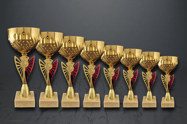 Standartní pohár s kovovým kalichem na mramorovém podstavci.