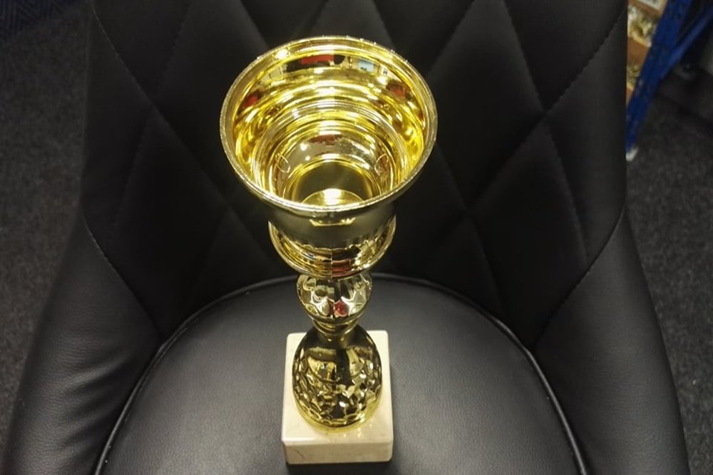 Ekonomický pohár celoplastový s originálním kalichem na mramorovém podstavci.